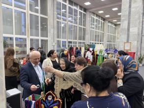Также в отделе была оформлена фотозона «Кунацкая», где были представлены старинные предметы быта дагестанцев: серебряные украшения, оружие (кинжалы, сабли) и национальные наряды. Это позволило окунуться в атмосферу культуры и традиций Дагестана.