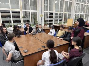 Отдел госбиблиографии пригласил учительницу физики Патимат Зуллиеву из Многопрофильного лицея №5 и ее учеников, которые активно участвовали в мероприятиях «Библионочи-2026».