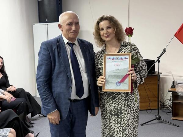 Председатель Дагестанского регионального отделения Всероссийской общественной организации ветеранов войны, труда Вооруженных сил и правоохранительных органов Магарам Алиджанов вручил памятную медаль председателю ДРОО «Сила в единстве», руководителю Проекта «Истоки героизма» вдове участка СВО Патимат Пайзулаевой.