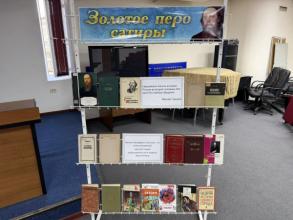 В конце вечера был проведен обзор литературы у книжной выставки «Золотое перо сатиры», где представлены произведения Салтыкова-Щедрина и книги о его жизни и творчестве.