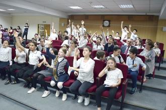 Одна из встреч прошла в средней школе №23. Школа уникальна тем, что дети в ней изучают кроме казахского и русского дагестанские языки. Дети подготовили для гостей небольшой концерт.