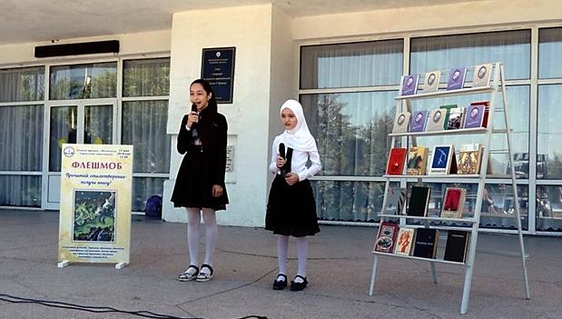 Звучали стихи и песни любимых поэтов. Все участники флешмоба получили в подарок книгу.