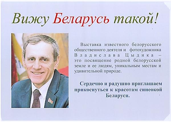 29 мая в фойе Национальной библиотеки РД им. Р. Гамзатова в 12.00 состоится открытие фотовыставки известного общественного деятеля, депутата Палаты представителей Национального Собрания Республики Беларусь, члена Союза писателей Белоруссии и Союзного государства Владислава Станиславовича Цыдыка «Вижу Беларусь такой…».