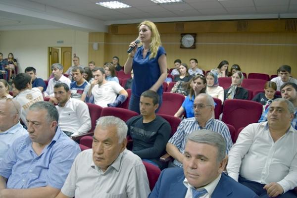 Шарип Шарипов является управляющим директором самого крупного в республике инвестпроекта «Югагрохолдинг». На встрече присутствовали студенты и преподаватели из ДУНХ, ДГСХА, аграрного колледжа.