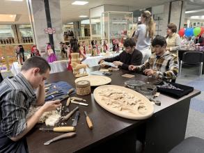 Каждый посетитель площадки отдела литературы по искусству нашел для себя занятие по душе. Все желающие могли стать участниками мастер-классов «Город мастеров» по декоративно-прикладному искусству: резьбе по дереву, ювелирному искусству, ковроткачеству и изобразительному искусству, организованных студентами ДХУ им. М. Джемала под руководством преподавателя училища Узайри Мадаева. Посетителям акции было очень интересно впервые самим поработать с необычными инструментами для резьбы, попробовать себя в ковроткачестве и в искусстве рисования и, наконец, окунуться в мир искусства. Украшением площадки отдела стала выставка дипломных работ студентов художественного училища «Ступени мастерства».