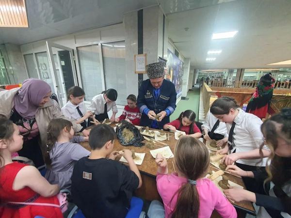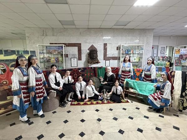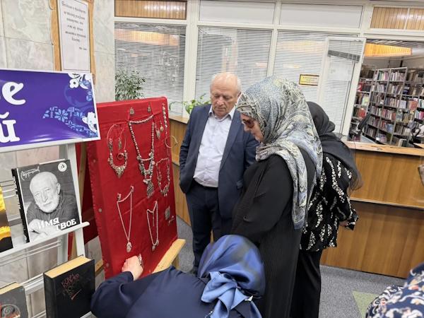 Также в отделе была оформлена фотозона «Кунацкая», где были представлены старинные предметы быта дагестанцев: серебряные украшения, оружие (кинжалы, сабли) и национальные наряды. Это позволило окунуться в атмосферу культуры и традиций Дагестана.