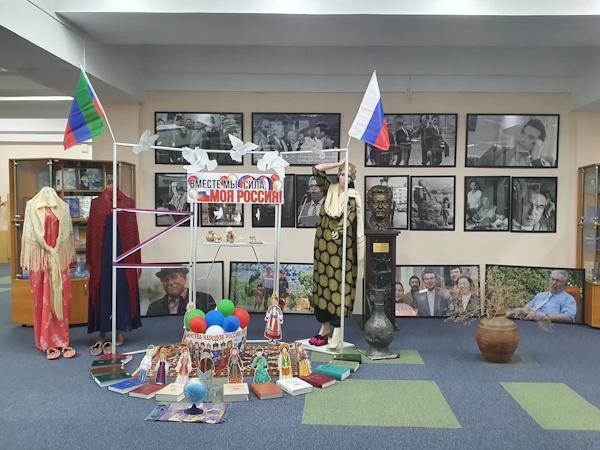 На втором этаже отдел абонемента организовал фотозону «Дагестанская сакля». Здесь гости могли сделать снимки в тематических декорациях, чтобы сохранить воспоминания о мероприятии. Также была подготовлена книжная выставка «В единстве народа — сила России». На ней представили книги писателей народов России и издания об истории праздника, культуре и быте разных народов страны.