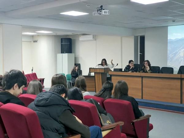 Отдел краеведения и национальной библиографии провел круглый стол. На встрече с кандидатом филологических наук, научным сотрудником ДФИЦ РАН Маризой Магомедовой и студентами ДГМИ обсудили тему «Этнические особенности национального единства народов Дагестана».