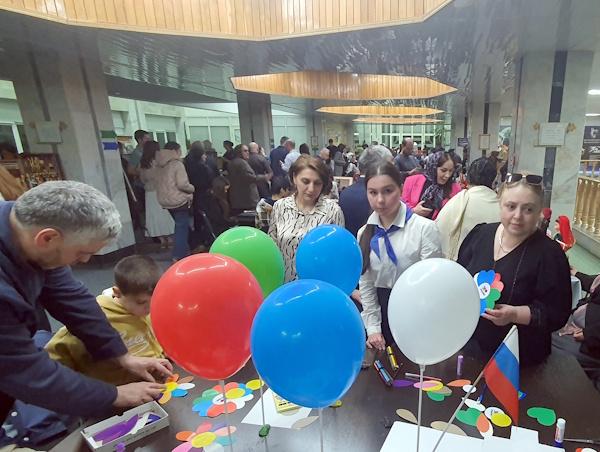 Для юных посетителей сотрудники отдела провели мастер-класс по изготовлению коллажа «Цветок единства». Каждый лепесток бумажного цветка был не просто цветным — он был подписан. Дети выбирали самые важные, по их мнению, ценности, которые объединяют людей: мир, дружба, милосердие, надежда, согласие и доброта. Лепестки другого Цветка Единства в виде сердечек символизировали любовь и единство. Цвета сердечек были соотнесены с государственными символами цветов флага России и Дагестана, а сердцевину цветка участники мастерской соединили кружочком с надписью «Я люблю Россию». Разные цвета и формы лепестков символизируют многонациональный состав нашей огромной страны, где все народы равны и живут в согласии. Участники мастер-класса смогли не только создать Цветки Единства, но и забрать их с собой на память.