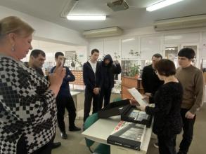 Увлекательной оказалась беседа в отделе редких книг, которую провела главный библиотекарь Оксана Саидова. Она показала студентам образцы из коллекций фонда: примечательные иностранные издания, экземпляры с особым художественным оформлением, книжные миниатюры, первые издания на языках народов Дагестана и многое другое. Среди экспонатов – факсимиле памятника древнерусской письменности – Остромирова Евангелия 1056–1057 годов, Коран XVII века, прижизненное издание Виктора Гюго на языке оригинала и многое другое.