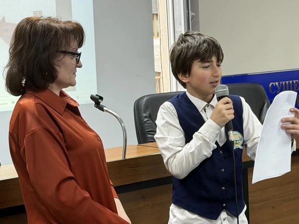 Ученица школы № 58 Сумая Матущенко поделилась впечатлениями о книгах про «Кота-детектива», а Мухаммад Абдурахманов рассказал интересные факты о домашних питомцах.