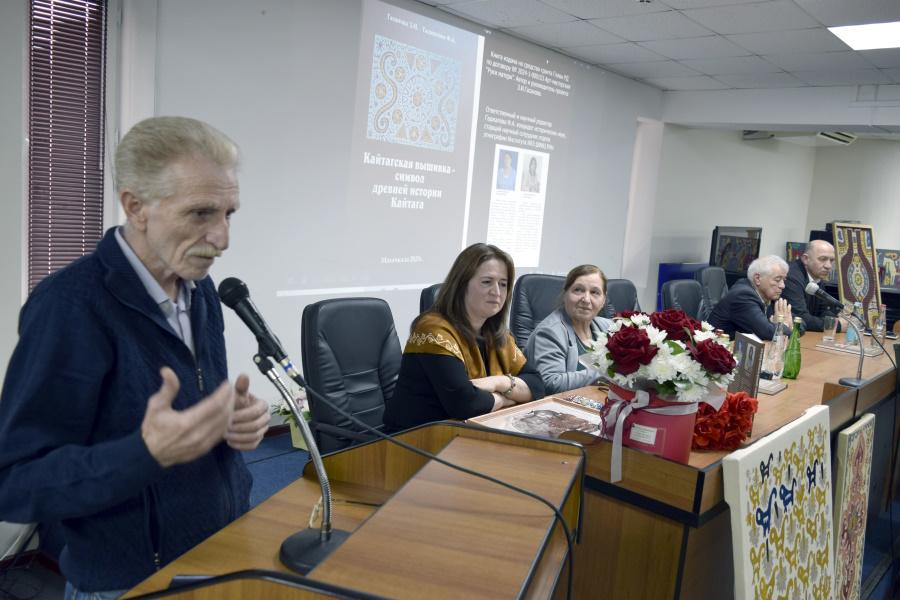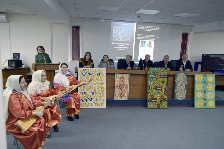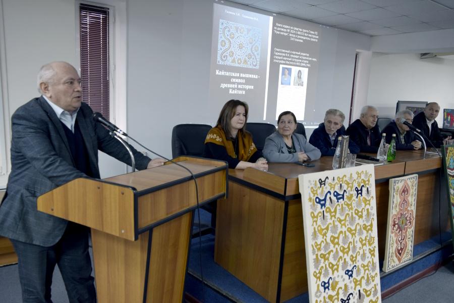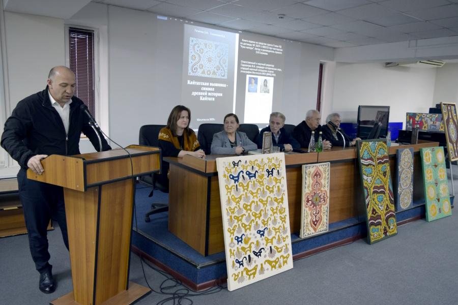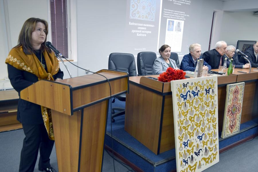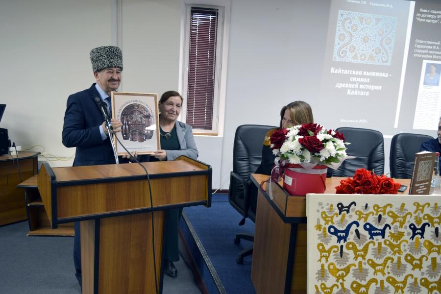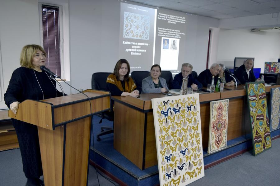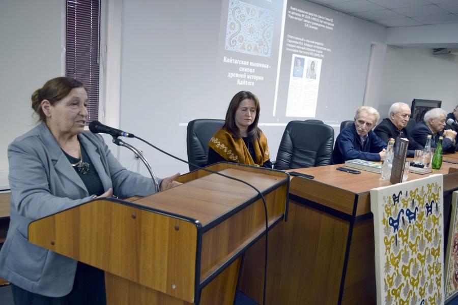Ведущая мероприятия, заведующая отделом культурных программ Ольга Алиева, приветствовала гостей и рассказала о научно-популярной книге «Кайтагская вышивка – символ древней истории Кайтага». Издание выпущено на средства гранта Главы Республики Дагестан в рамках проекта «Арт-мастерская «Руки матери», руководителем которого является Зубайдат Гасанова. Книга стала результатом сотрудничества народного мастера РФ, лауреата Премии Министерства культуры России «Душа России» Зубайдат Гасановой и кандидата исторических наук, старшего научного сотрудника Института истории, археологии и этнографии ДФИЦ РАН Фатимы Гаджаловой.