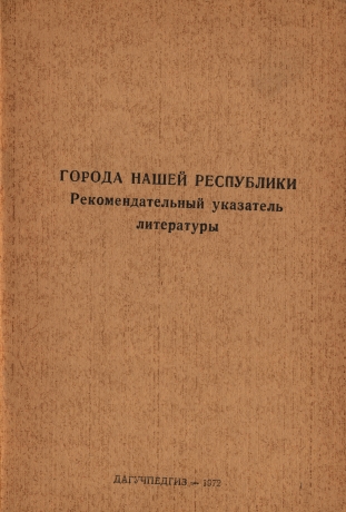Рекомендательный указатель «Города нашей республики» составлен в помощь краеведам, студентам географических и исторических факультетов учебных заведений. В указатель включены материалы на русском языке и языках народов Дагестана. Материал в указателе группируется в систематическом порядке (по городам). Внутри разделов указаны сначала книги, затем статьи в алфавитном порядке. Указатель снабжен алфавитным указателем авторов.