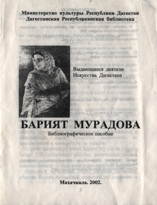 Барият Мурадова: Персональное библиографическое пособие.- Махачкала, 2002.- 6 с.(Серия «Выдающиеся деятели искусства Дагестана»).