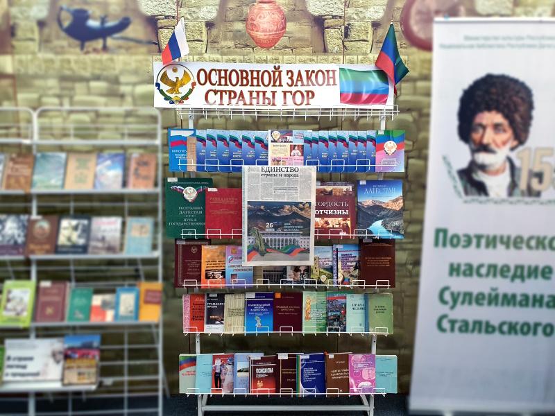 С 23 июля 2024 года в читальном зале отдела краеведческой и национальной литературы Национальной библиотеки РД им. Р. Гамзатова вниманию пользователей представлена книжно-иллюстративная выставка, посвященная Дню Конституции Республики Дагестан.