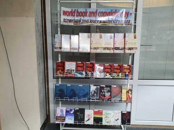 С 22 апреля 2026 года в отделе иностранной литературы представлена выставка, посвящённая Всемирному дню книги и авторского права. Этот праздник отмечается ежегодно с 1996 года.
